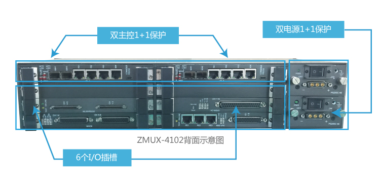 2)全系統冗余:除雙IP鏈路保護,ZMUX-4102還能提供雙主控板1+1保護、雙電源1+1保護等冗余機制。